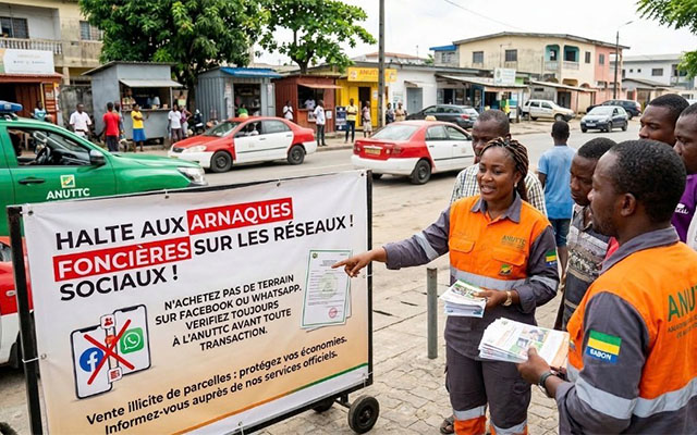 Libreville, le 16 mars 2026 — Les réseaux sociaux sont devenus le marché noir du foncier gabonais. Sur Facebook et WhatsApp, des escrocs proposent à prix bradé des parcelles inexistantes ou déjà attribuées, piégeant des acquéreurs de bonne foi qui y engloutissent parfois l’intégralité de leurs économies. Face à cette gangrène numérique, l’Agence nationale de l’urbanisme, des travaux topographiques et du cadastre (ANUTTC) a choisi de quitter ses bureaux pour aller au-devant des citoyens. Le week-end dernier, ses équipes ont battu le pavé des communes de l’Estuaire, Libreville, Owendo et Akanda, pour une campagne de sensibilisation au contact direct des populations.